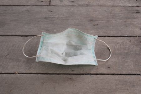 used surgical mask on the floor. discarded mask concept corona virus,covid-19.