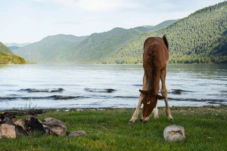 Bay horse graze...