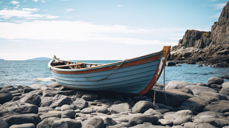 a boat sits on ...