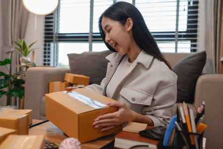 Woman unpacking...